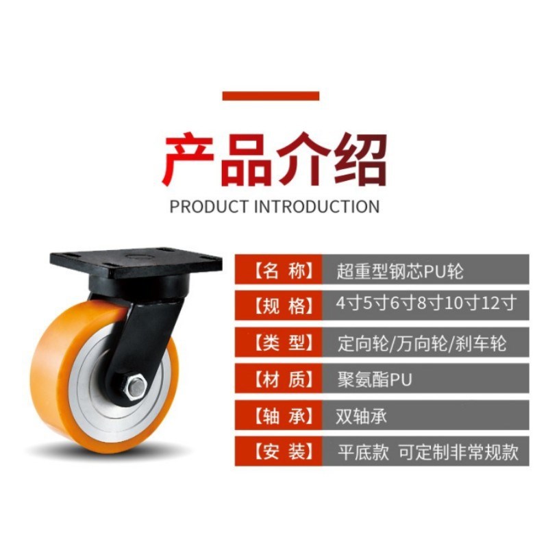 超高载重钢芯聚氨酯PU定向万向轮4/5/6/8/10/12寸农场大门脚轮 - 组颜五金的小店57