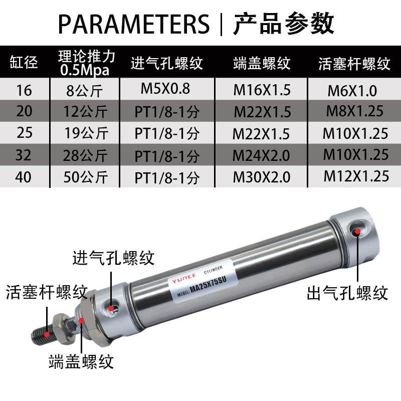 迷你气缸平尾MA16/20/25/32/40-25X50X75X100X125X150X200*300SU - 广漫枝枫丹希专卖店