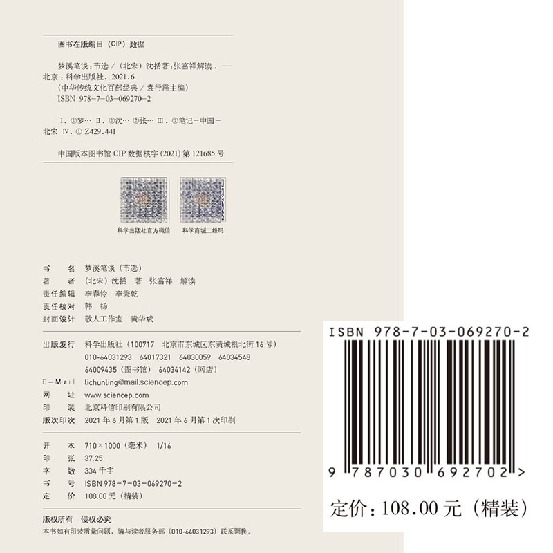 正版现货精装 梦溪笔谈 节选 沈括 科学出版社9787030692702
