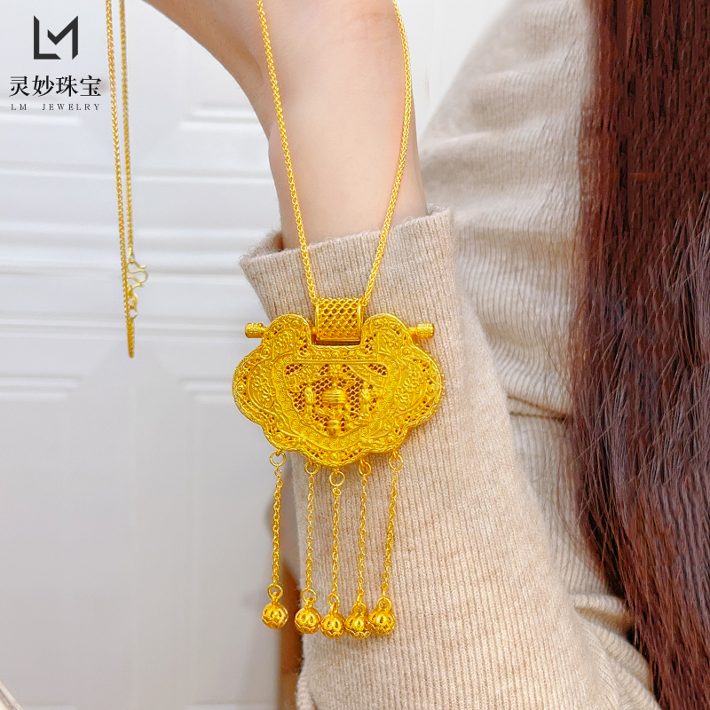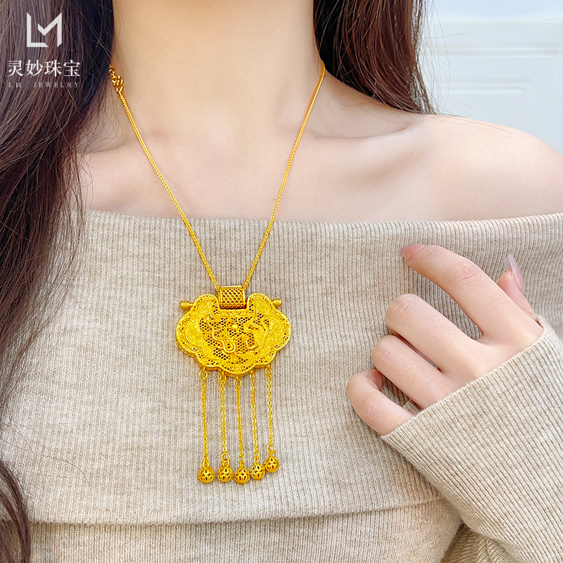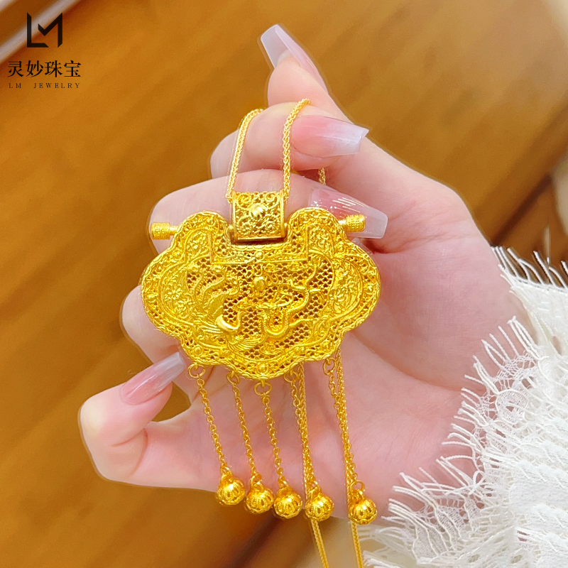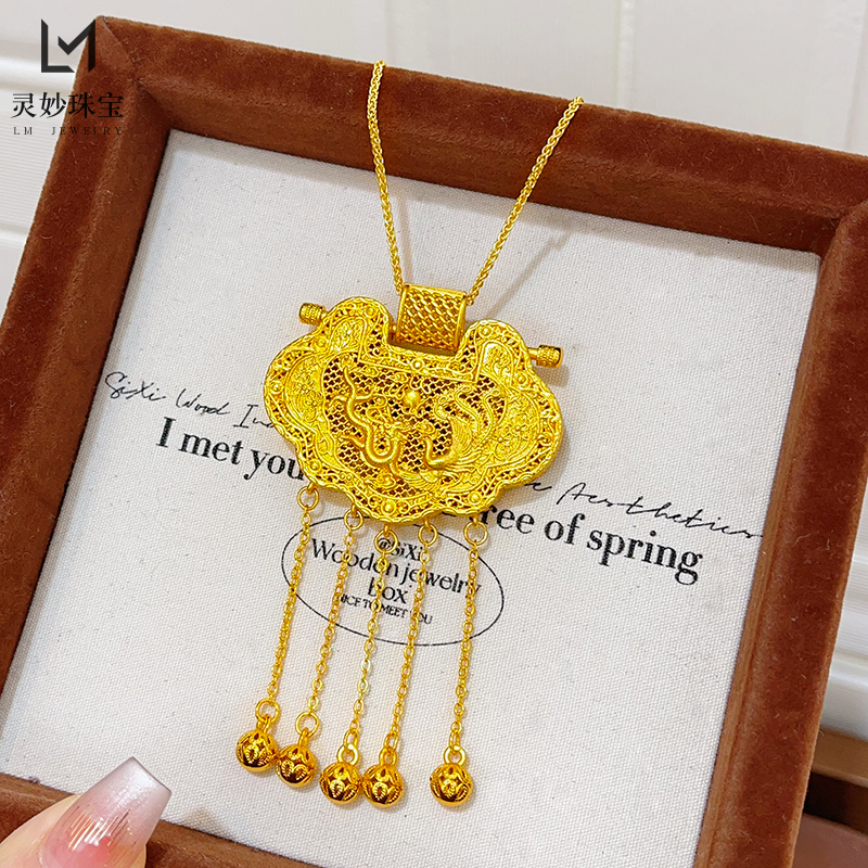 金店同款沙金镂空花丝天子门生锁包流苏吊坠龙凤呈祥项链国风送礼 - 灵妙水晶珠宝