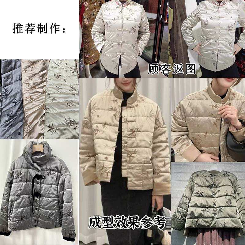 您的位置:他他商城  >   >  秋冬中式纯羊毛绗缝夹棉袄布料竹叶提花国风外套马甲棉衣裤面料