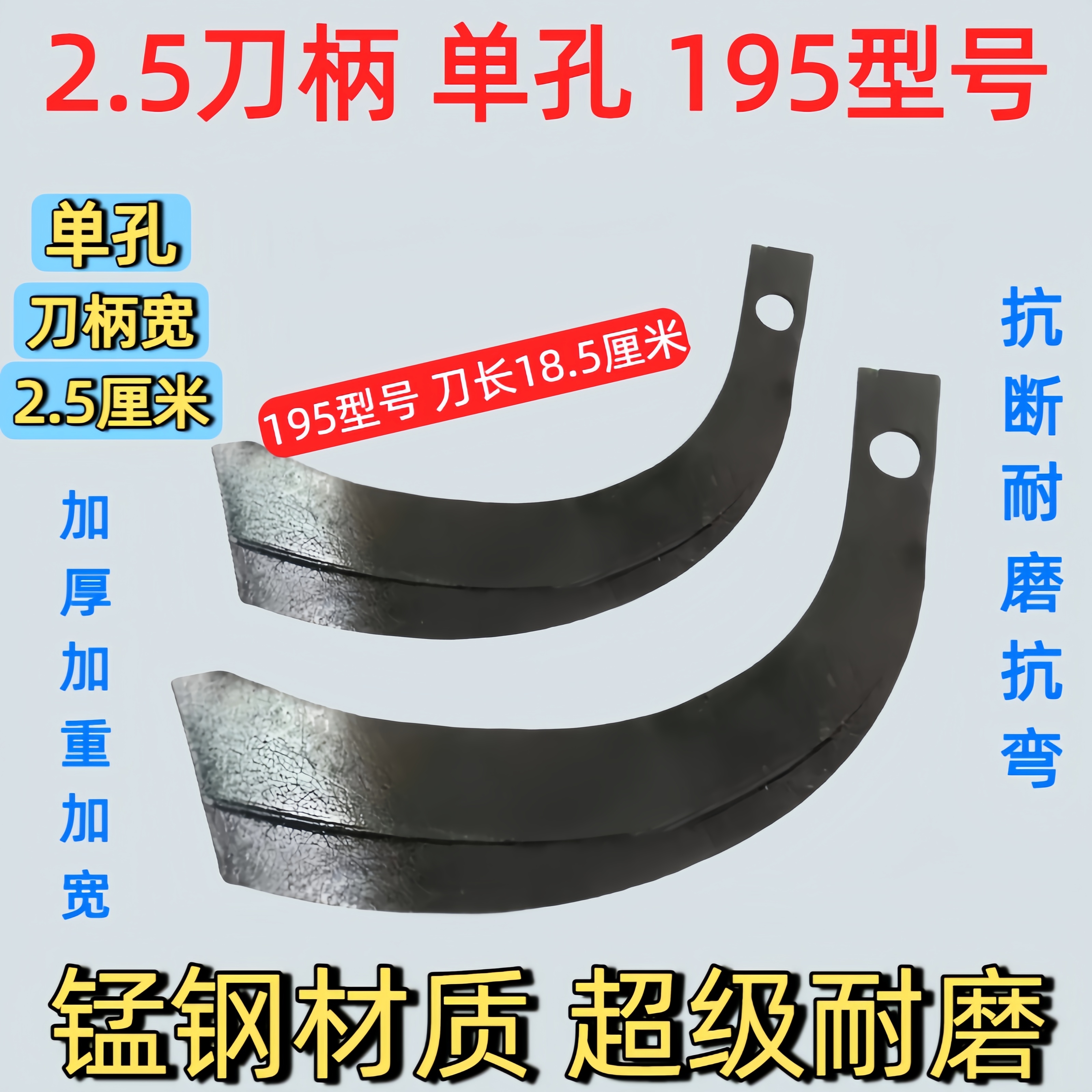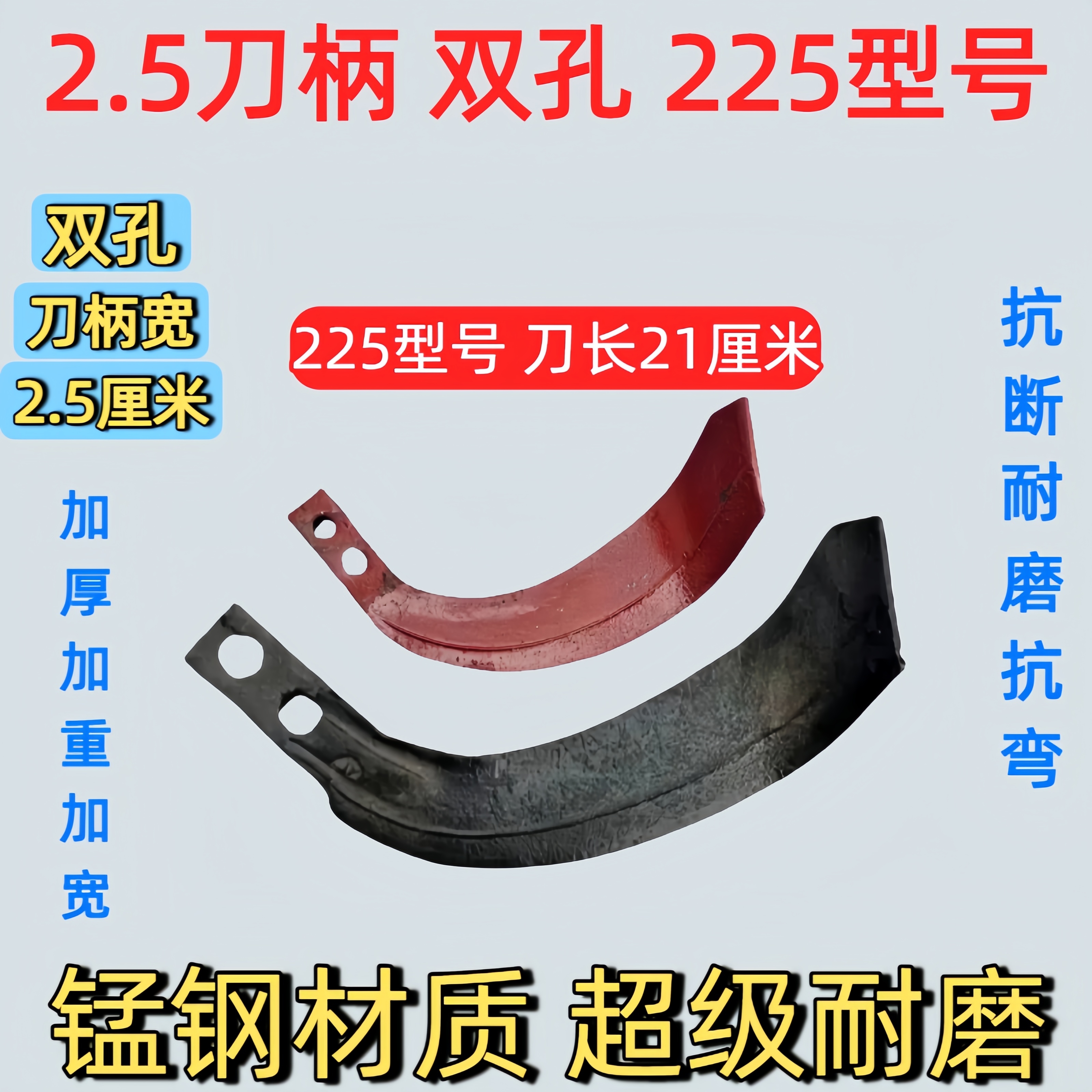 2.5刀柄手扶旋耕机微耕机刀片加宽加厚耐磨抗弯抗断双孔犁刀耙齿