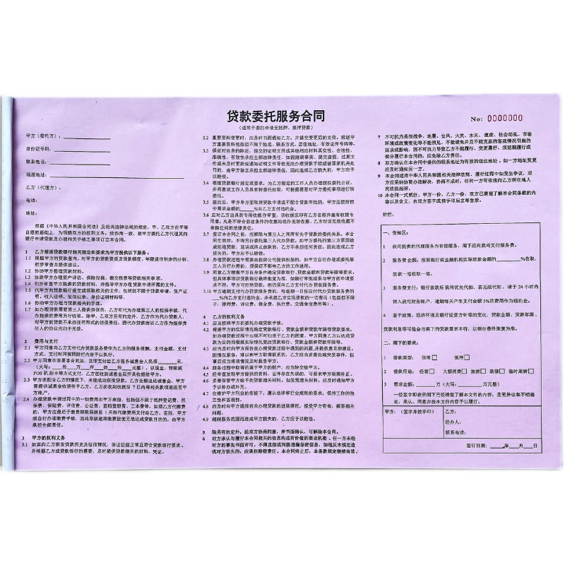 A3贷款委托服务合同定制二联金融公司房屋车辆抵押协议居间借款单 - 羽晨实体印刷厂