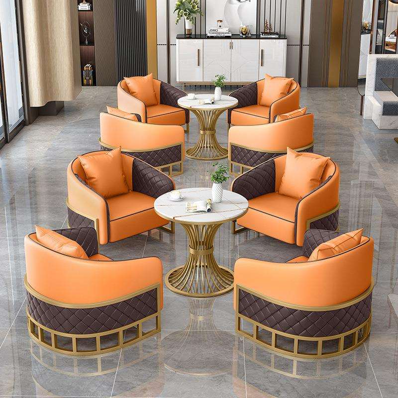 轻奢咖啡厅奶茶店单双人卡座沙发4S店售楼处商务会客洽谈桌椅组合 - 流萤逝商贸城