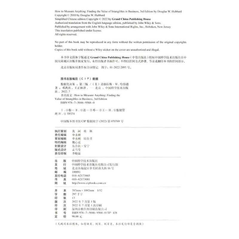 数据化决策:第3版(美) 道格拉斯·W. 哈伯德著 邓洪涛, 王正林译中国科学技术出版社新华书店正版 - 菲尼克斯图书专营店