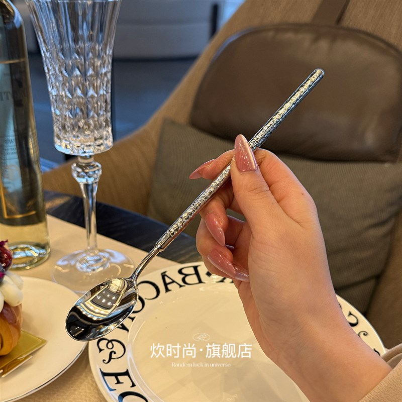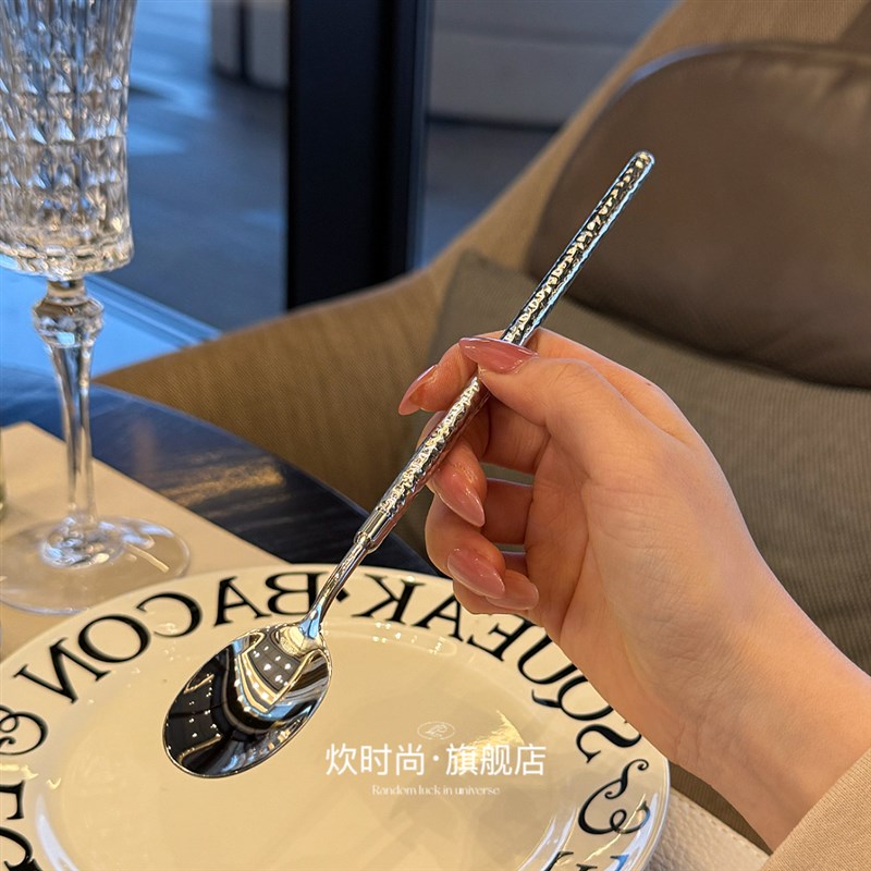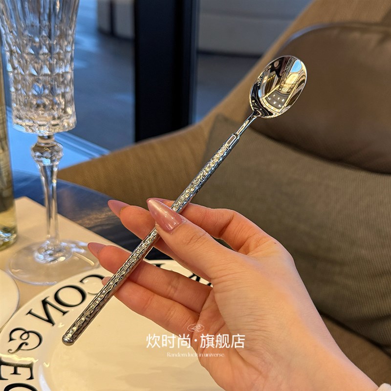 *漂亮老板娘自用*锤纹长柄搅拌勺勺冰勺蜂J蜜咖啡勺18/10不锈钢 - 天通坊日用品