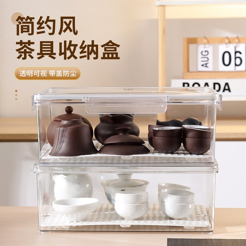 您的位置:他他商城  >   >  沥水透明茶具收纳盒防尘茶杯整理箱茶F几长方形茶叶储物盒户外旅