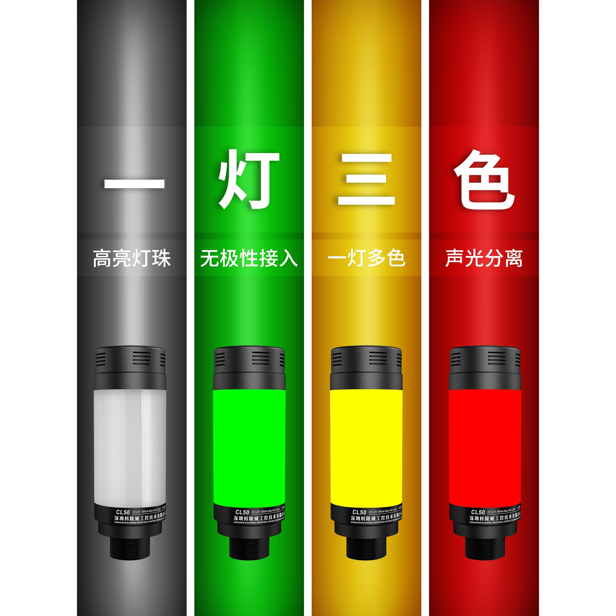 三色报警信号灯单层警示灯机床信号指示LED12V24蜂鸣带声音报警器 - 实创百货官营店