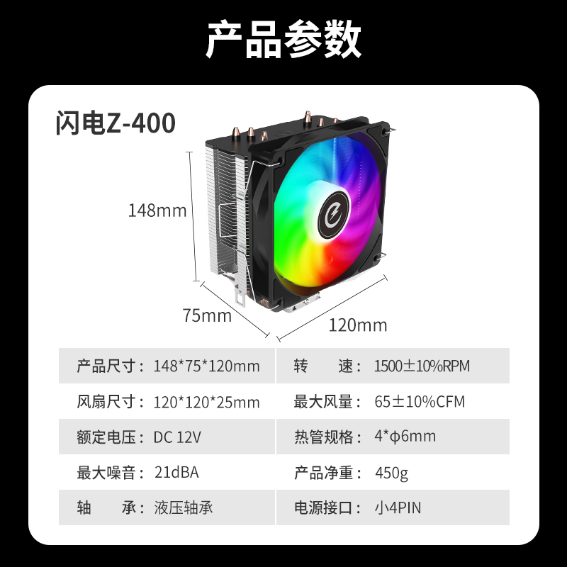动力火车闪电Z400K电脑CPU散热器风扇ARGB四铜管台式机塔式风冷 - 动力火车数码旗舰店