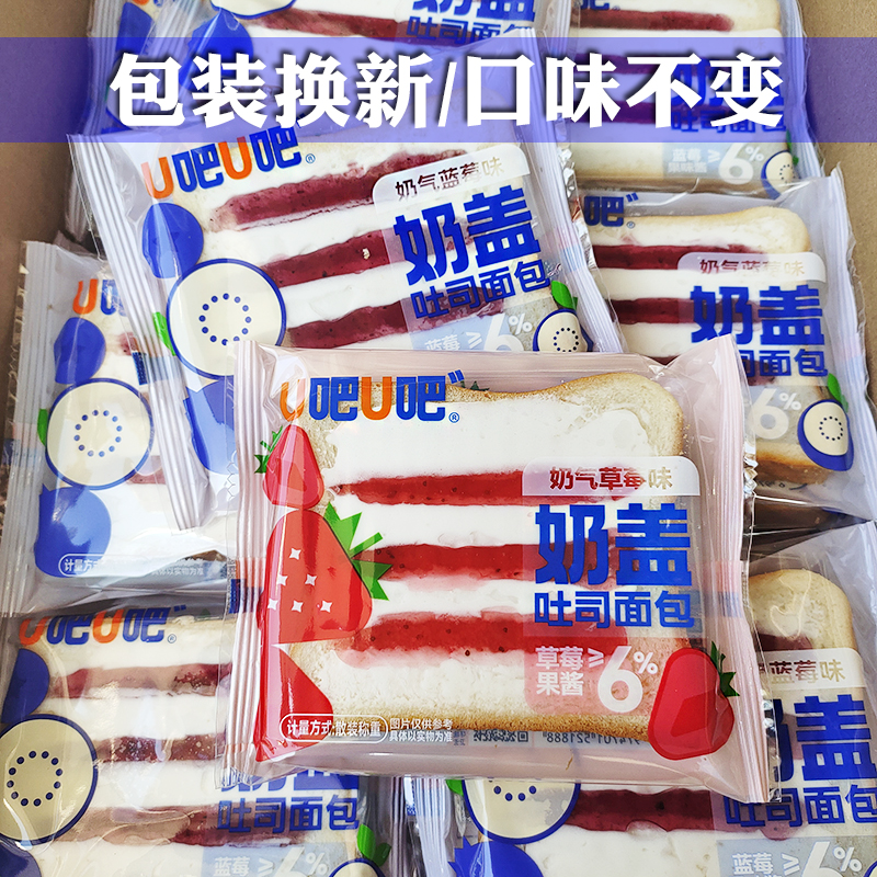 U吧U吧奶盖吐司面包蓝莓草莓果味酱办公休闲早餐充饥糕点零食品 - 千乘食品