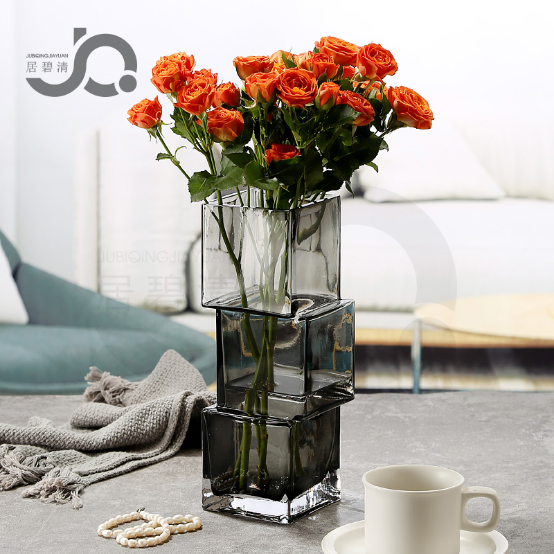 您的位置:他他商城  >   >  现代简约创意错位不规则方块冰块玻璃花瓶藕节插花鲜花百合玫瑰