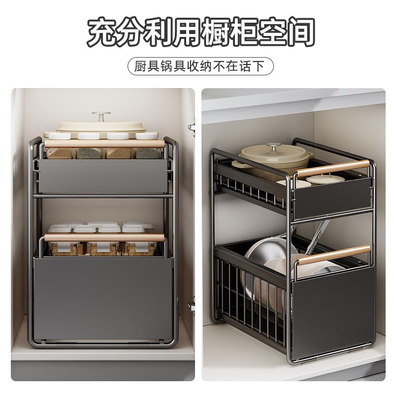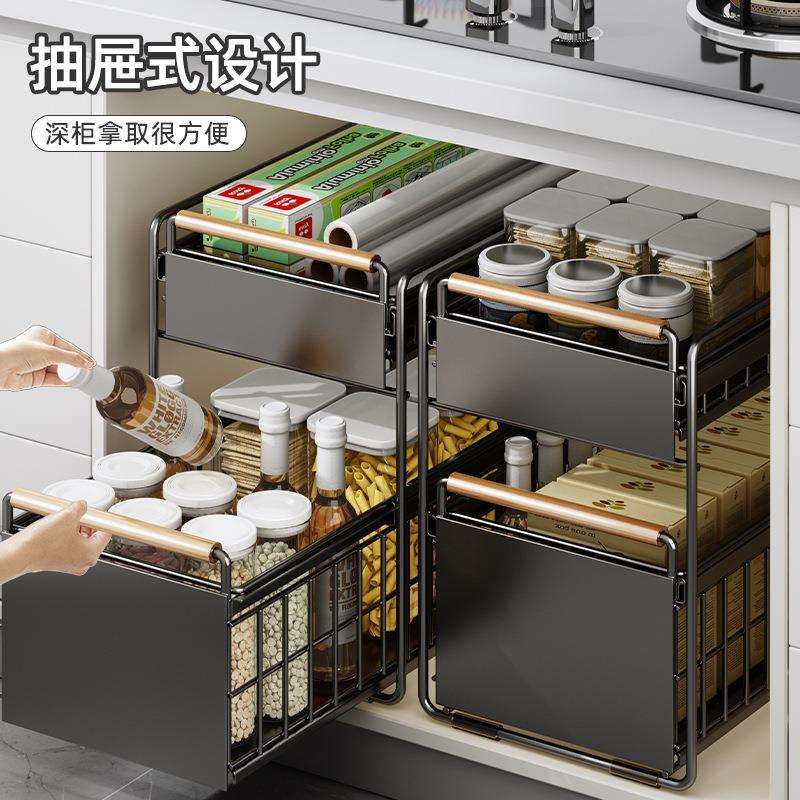 优勤厨房橱柜拉篮下水槽置物架多功能碗碟调料收纳抽拉式分王小祥 - 梅希百货店3