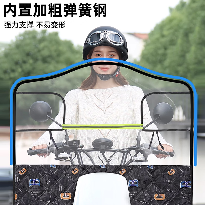 电动车前挡风板秋冬款电瓶车摩托车挡风罩加厚四季春秋高清防风罩 - 夏尔运动户外专营店