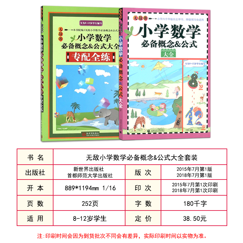 无敌小学数学概念&公式大全专配全练2册套装小学生1-6年级数学知识思维训练辅导教材资料书籍配套习题册首都师大新世界 - 南海图书专营店