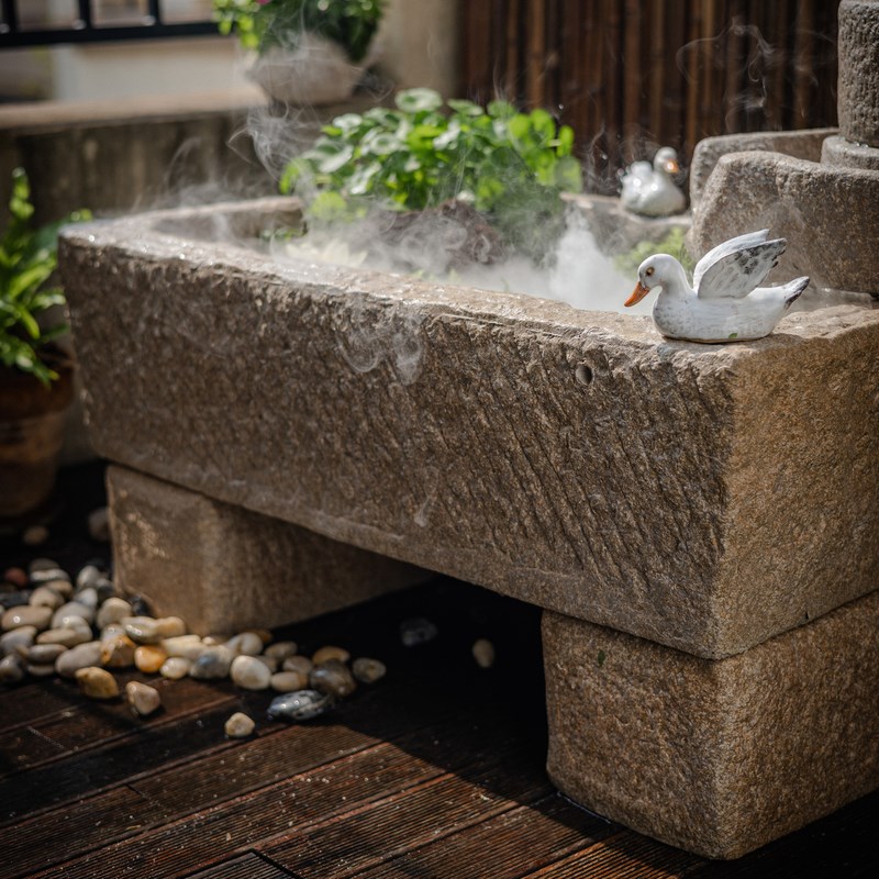 花园庭院装饰造景布置o摆件石头鱼缸花盆石槽水培睡莲荷花盆缸景