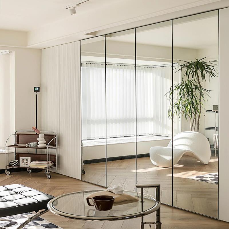镜子柜门定制轻奢隐框镜面镀膜钢化玻璃柜门铝合金衣柜门衣帽间