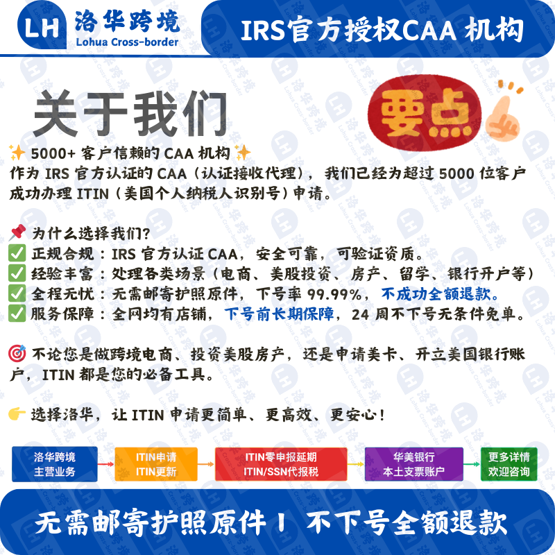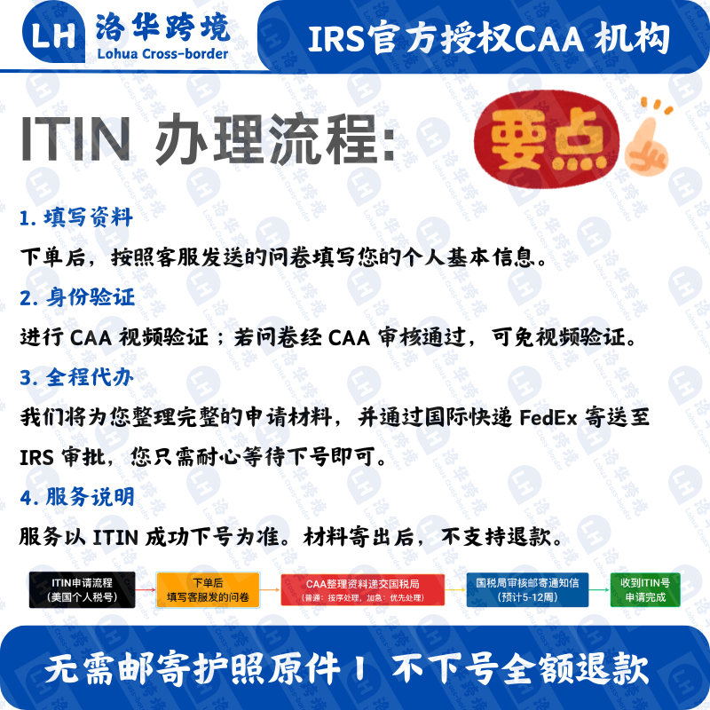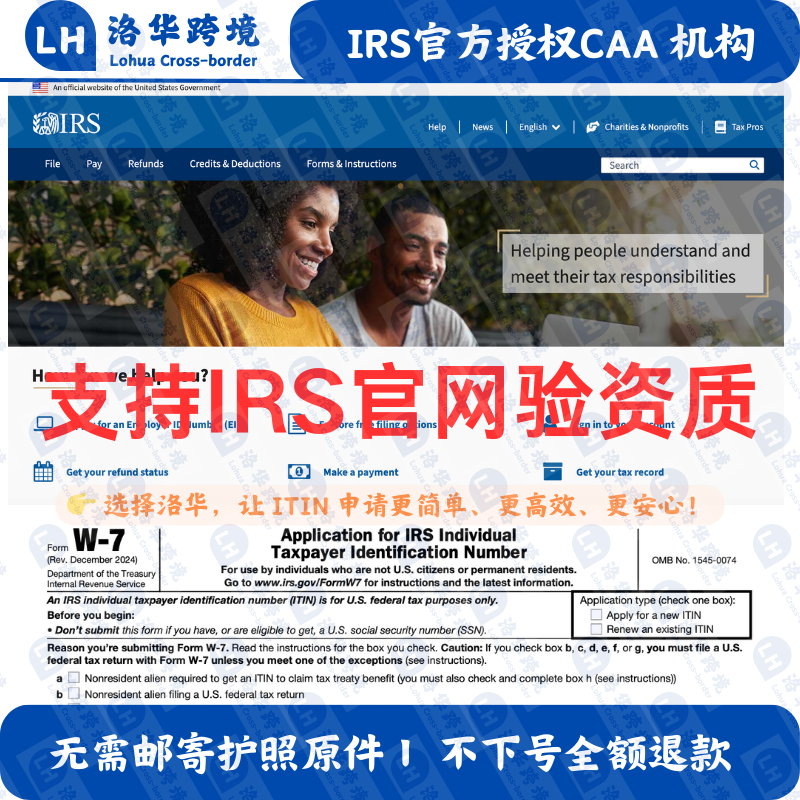 ITIN申请/过期更新 ITIN 延期 及自备公证件/自备 W-7和税表客户 - 洛华跨境 IRS认证CAA机构