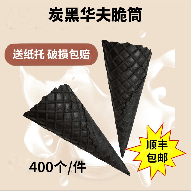 网红冰淇激淋机器脆皮甜筒雪糕脆蛋筒黑色竹炭筒花边珍宝筒400只 - 瑶蒂企业店