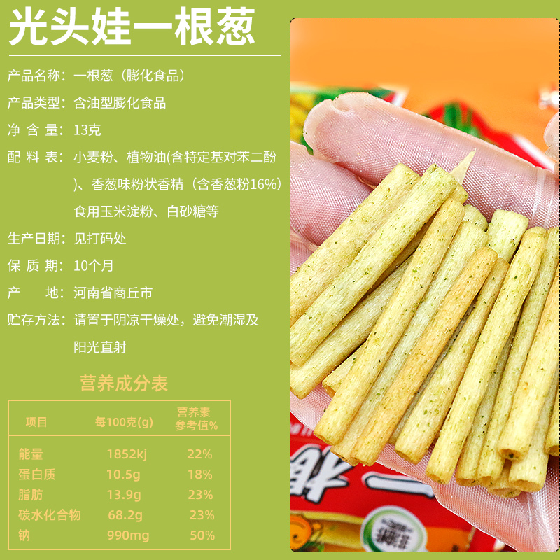 光头娃一根葱薯条30g大袋葱香味一根葱膨化食品儿时怀旧休闲零食 - 可奇零食