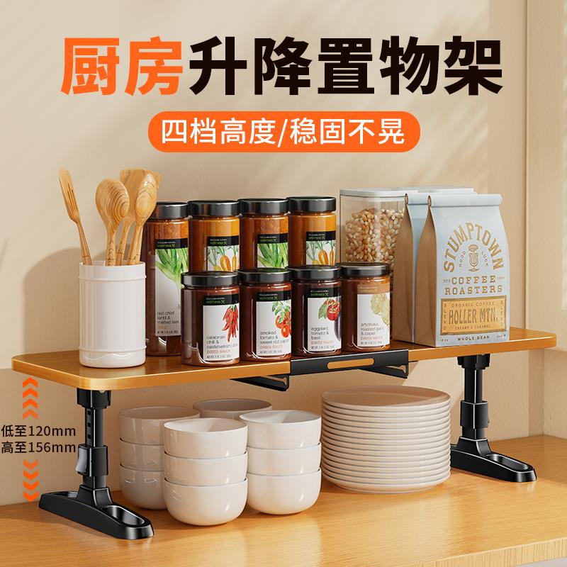 可升降折叠厨房置物架台面橱柜内分层调料收纳伸缩碗碟备菜托架子 - 塞斯卡生活馆