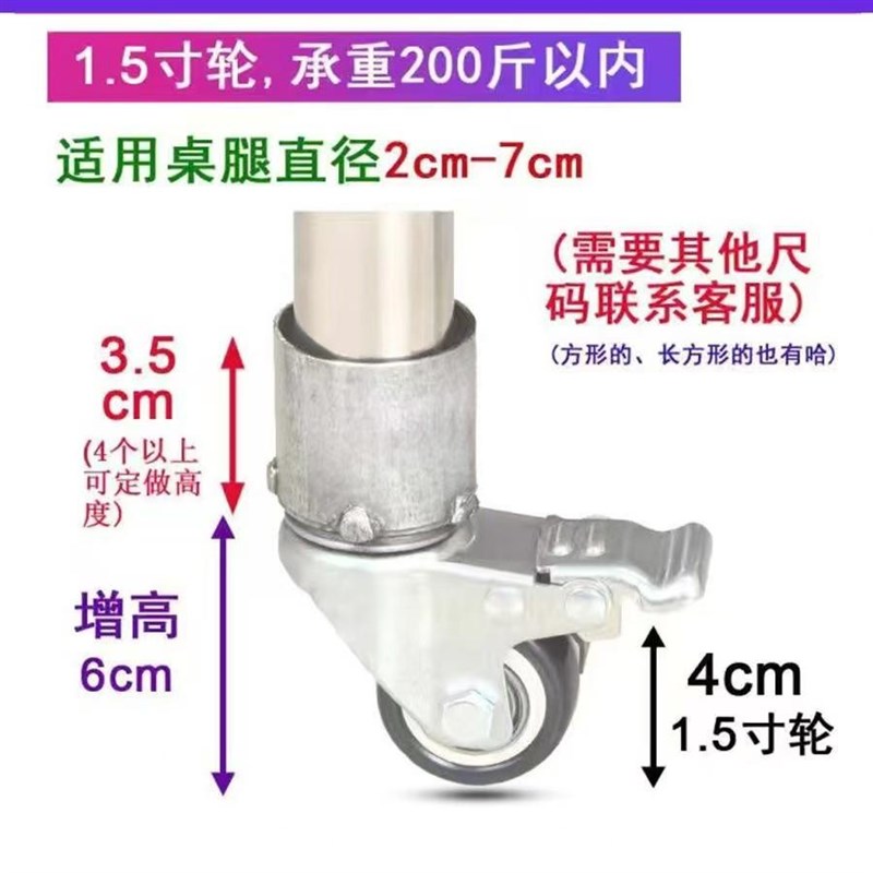 圆腿家具脚轮茶台茶几静音万向轮蒸汽炉大承重增高滚轮滑轮带刹车 - 简行社严选店的小店12
