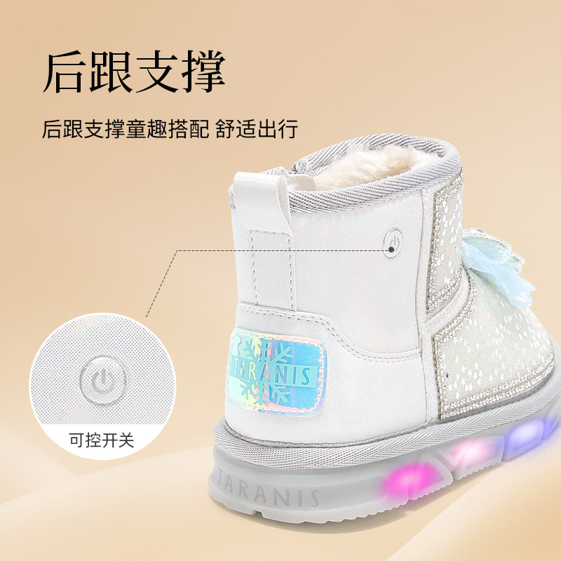 泰兰尼斯meta儿童雪地靴冬季新款女童发光闪灯短靴小女孩保暖棉鞋 - 泰兰尼斯童鞋旗舰店