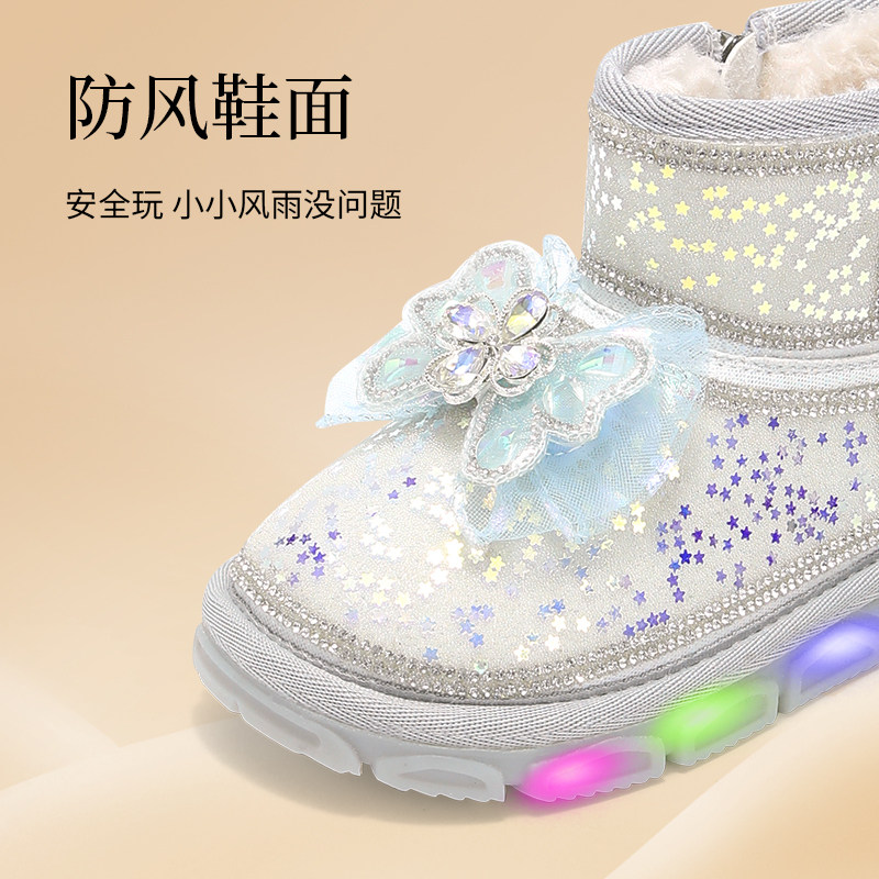 泰兰尼斯meta儿童雪地靴冬季新款女童发光闪灯短靴小女孩保暖棉鞋