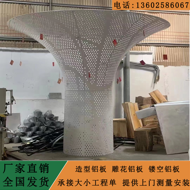 弧形双曲铝单板i氟碳曲面异形包柱铝板喇叭口造型冲孔铝板佛山
