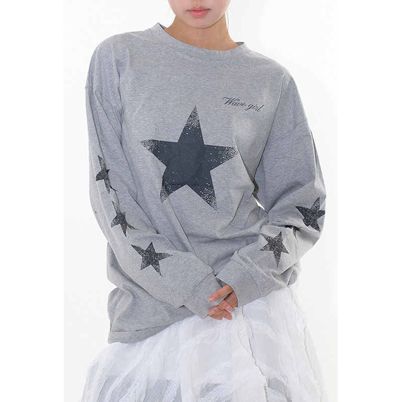 韩代Raucohouse Halo star long sleeve 星星长袖T恤上衣宽松百搭 - 韩小花 韩国设计师集合店