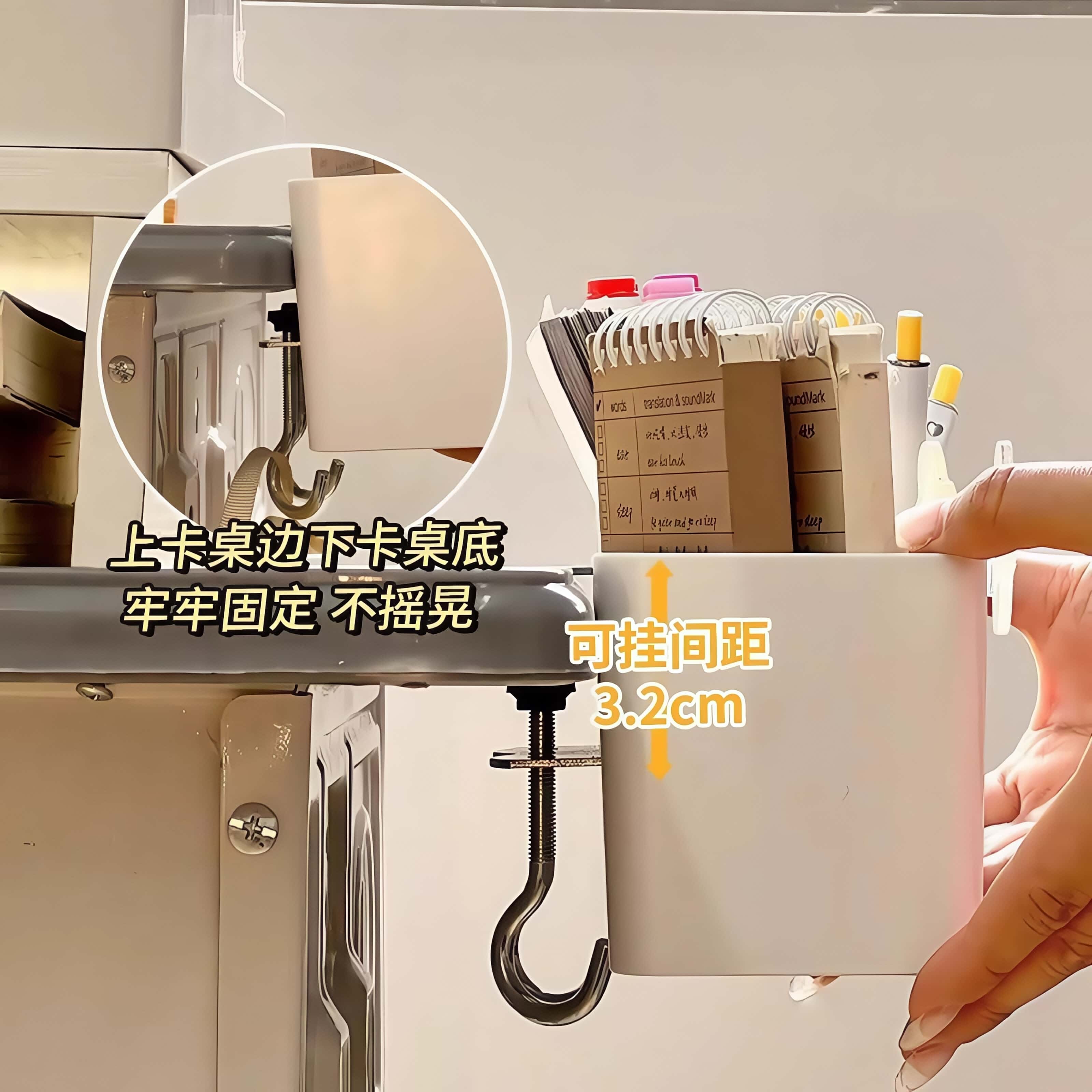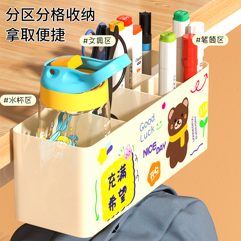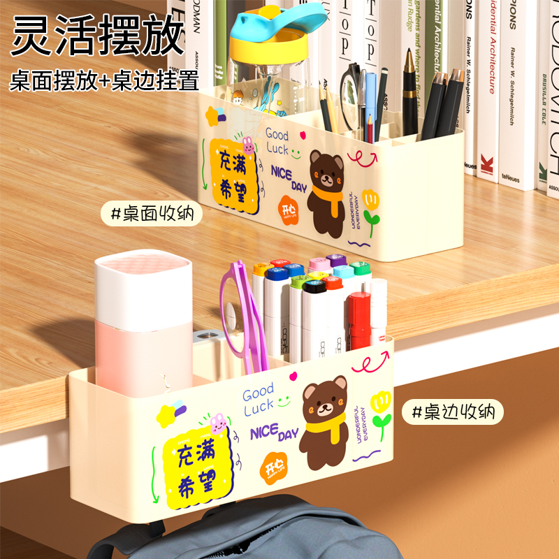 桌边侧边收纳笔筒置物架悬挂夹式学生教室课桌神器书包挂钩收纳盒 - 发货超快小店