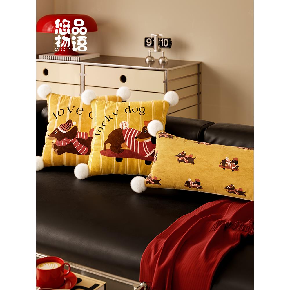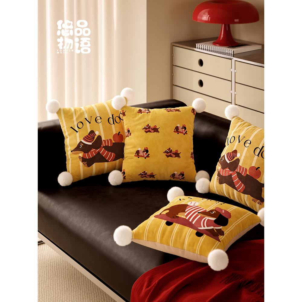 达克斯猎犬美国卡通氛围覆古枕头客厅沙发车枕腰枕新的可拆卸枕套 - 璇玑百货官营店
