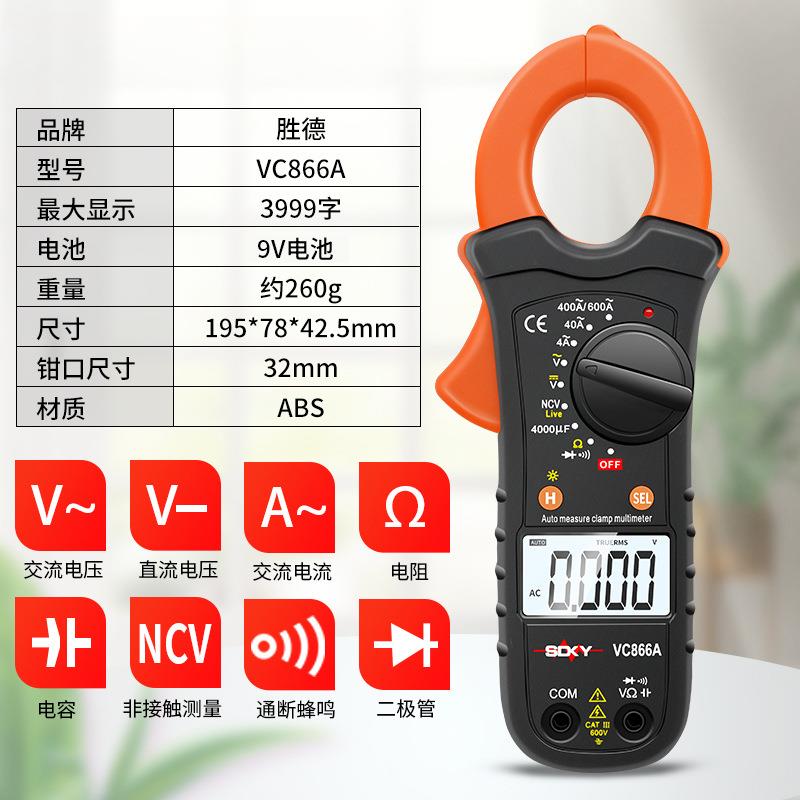 您的位置:他他商城  >   >  电工数字钳形表万用表VC866A钳形电流表表袖珍迷你电容背光