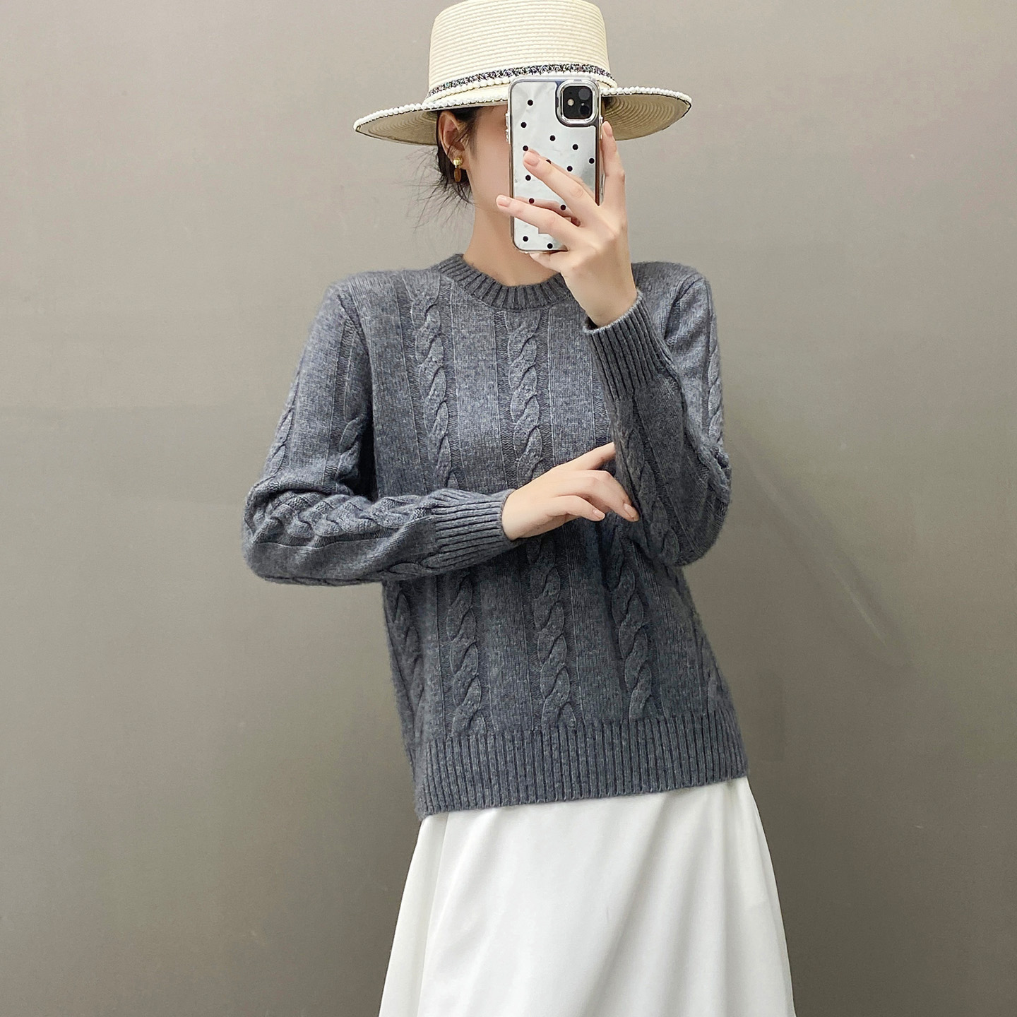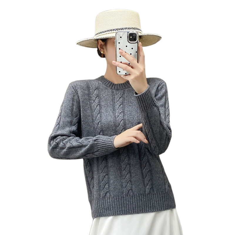 谁穿谁美~欧洲站秋冬软糯山羊绒衫女圆领加厚毛衣宽松扭花针织衫 - 春博服装直营店