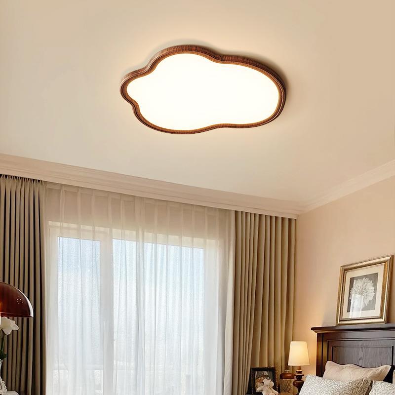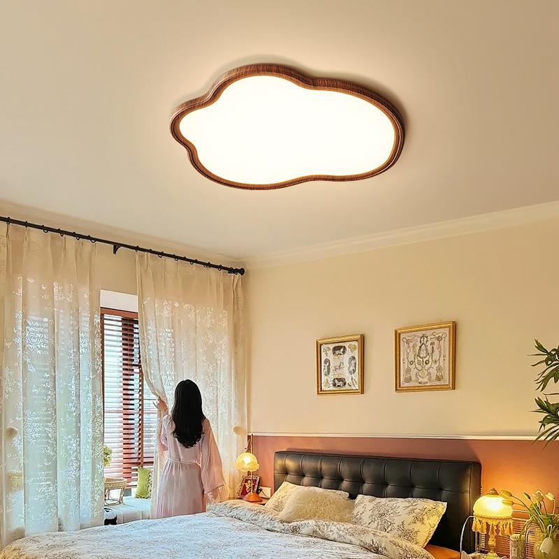 云朵中古风卧室灯2025新款胡桃木纹色护眼灯全光谱儿童房间吸顶灯 - akvckifqfa的小店