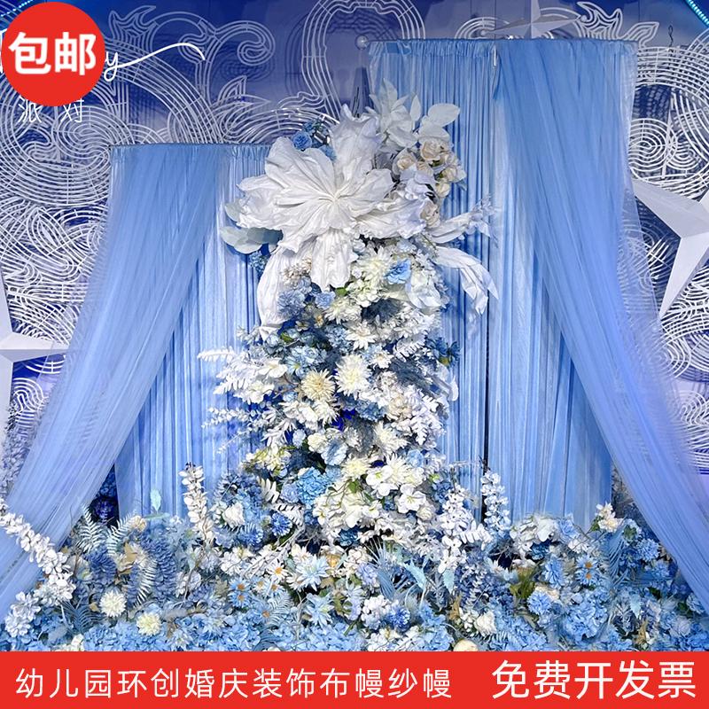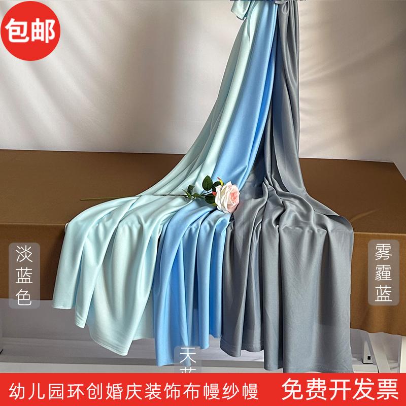 淡蓝色布幔吊顶幼儿园环创布料婚庆弹力布牛奶丝中式国风书法纱幔