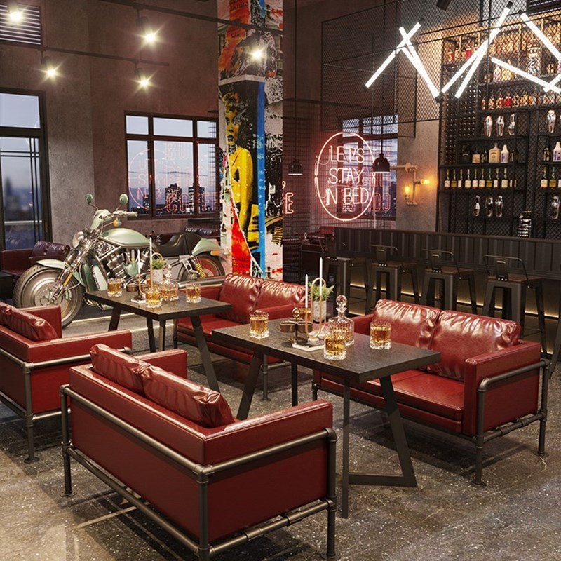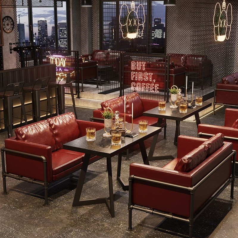 工业风桌椅酒吧清吧火锅店西餐厅奶茶店咖啡厅复古卡座沙发 - 湖海行渔具