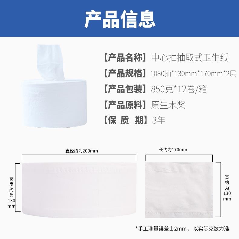 派洁士中心抽取式大盘纸大卷纸卫生纸擦手纸商用公用厕纸专用抽纸 - 丰乐百货官营店