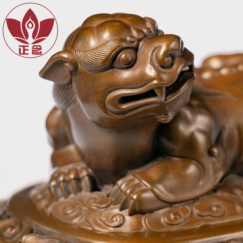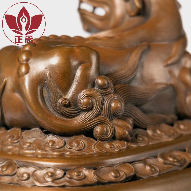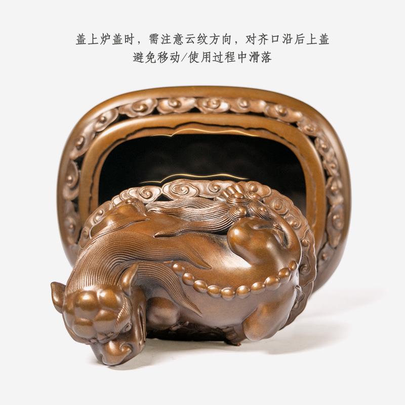 庆松堂苏工铜炉名家胡庆松制紫铜卧狮熏炉复古炉文房摆件熏香炉 - 软通百货官营店