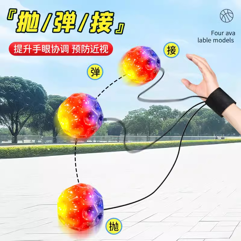 手腕弹力球月球石带绳发光回弹甩甩球儿童腕带回力球男孩球类玩具