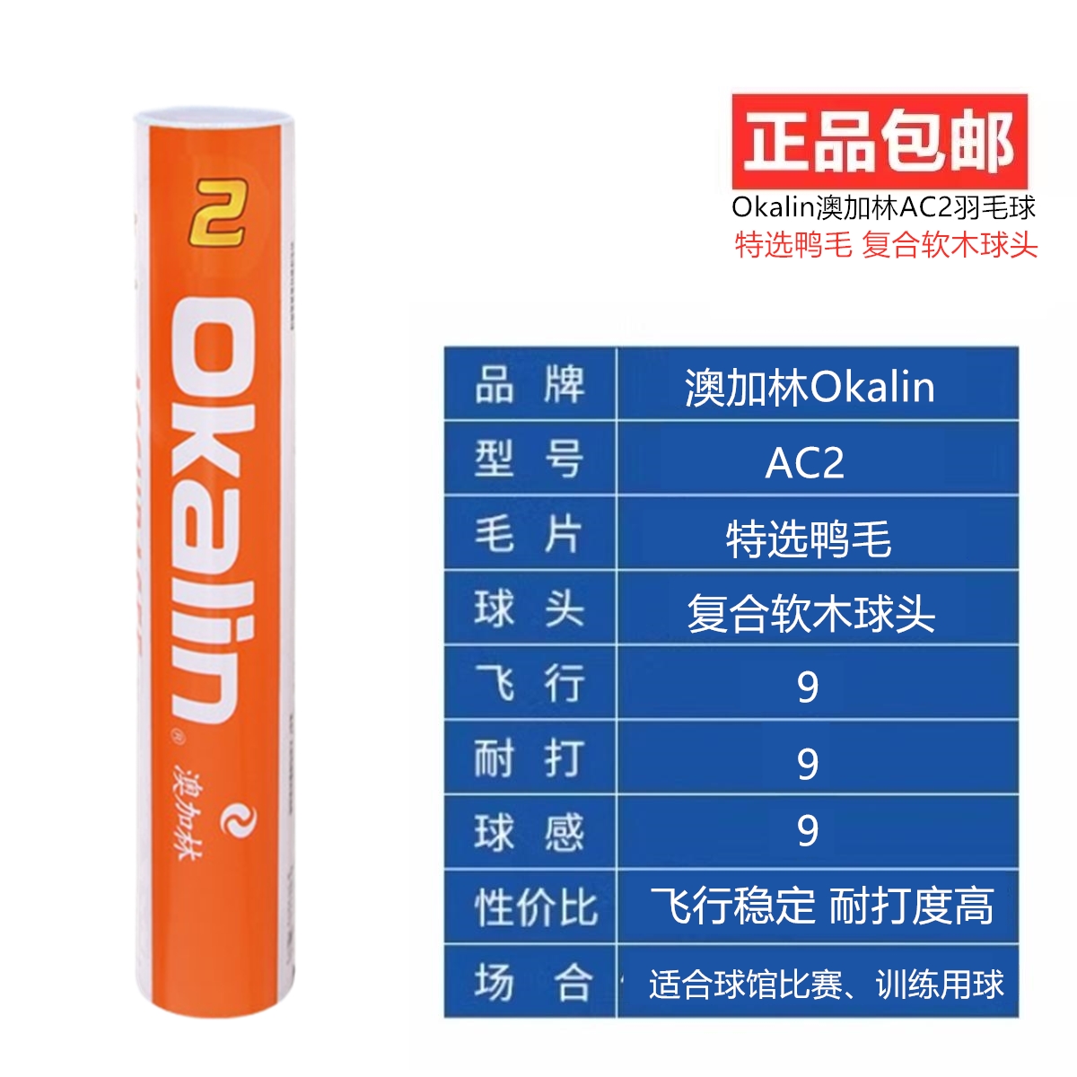 正品澳加林Okalin威健羽毛球AC2稳定耐打特选鸭毛训练比赛12支装 - 沈阳宏翔体育用品店