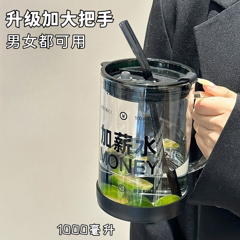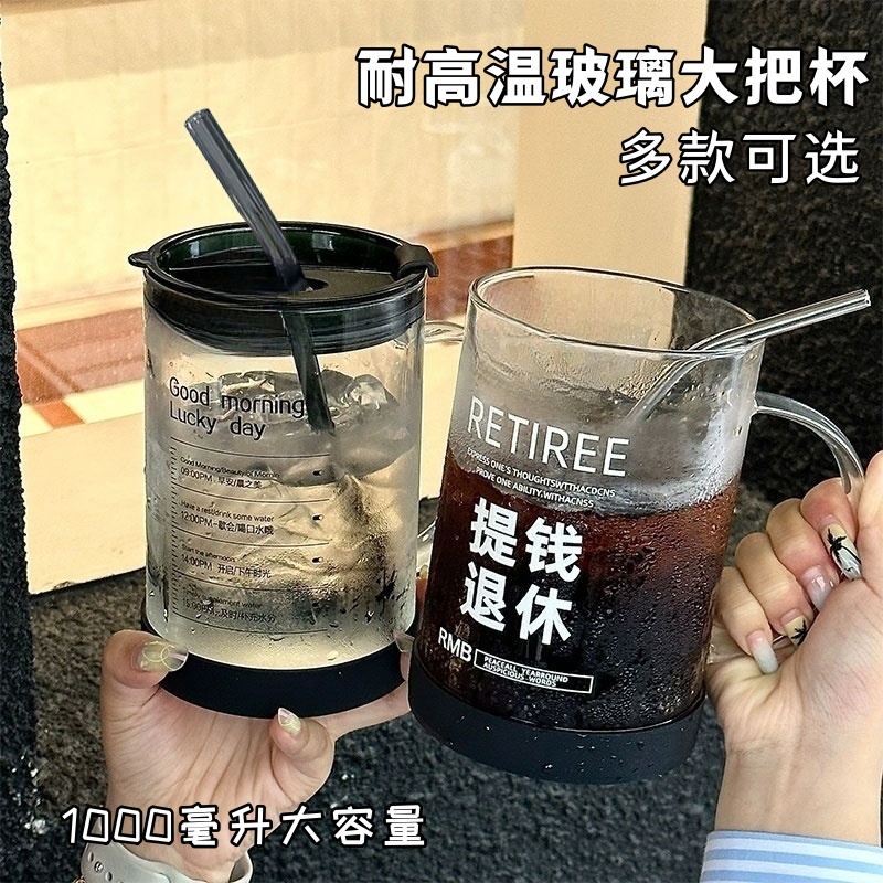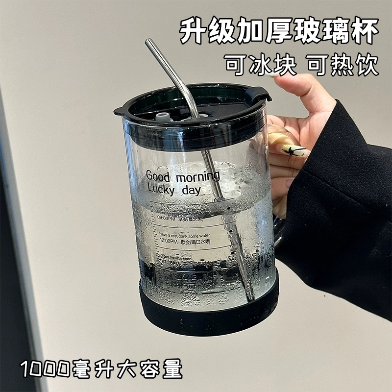 耐高温玻璃杯大容量1000ml高颜值情侣学生喝水杯子办公室女吸管杯