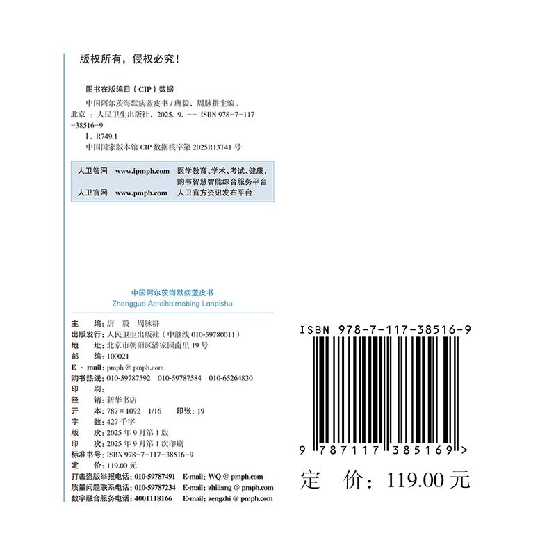 中国阿尔茨海默病蓝皮书 唐毅 周脉耕 平装 人民卫生出版社9787117385169 - 世纪在线图书专营店