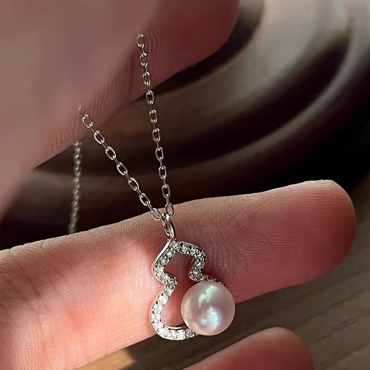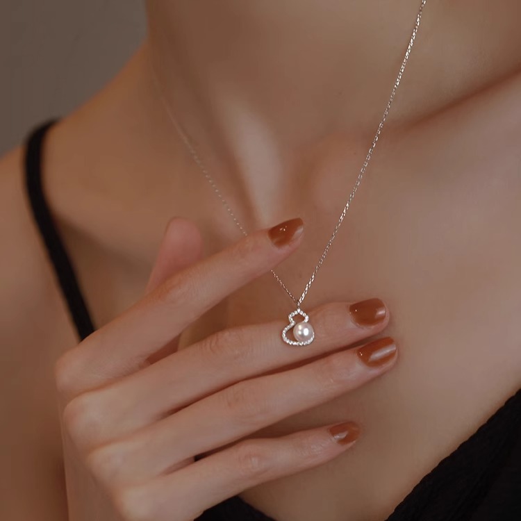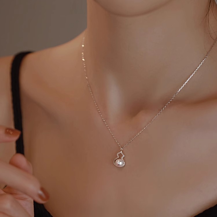 s925纯银施家珍珠小葫芦项链女轻奢高级感小众设计吊坠本命年颈链 - 幸运公主首饰