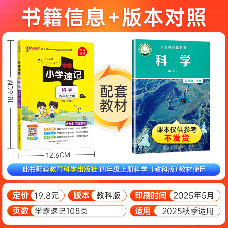 您的位置:他他商城  >   >  杭州发货】2025秋季pass小学学霸速记科学教科JK版三四五六年级上下册同步课本课堂笔记知识点集结语数英练习册漫画解读绿卡工具书