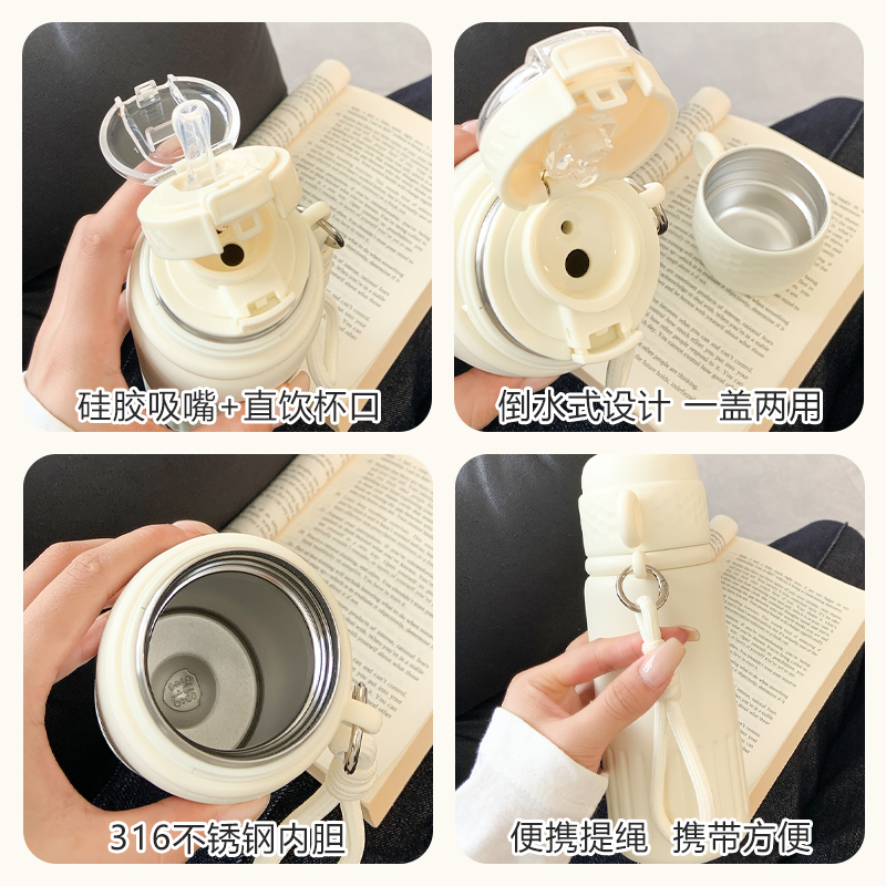 简约316保温杯女生2025新款高颜值便携带盖水杯女士吸管双饮杯子