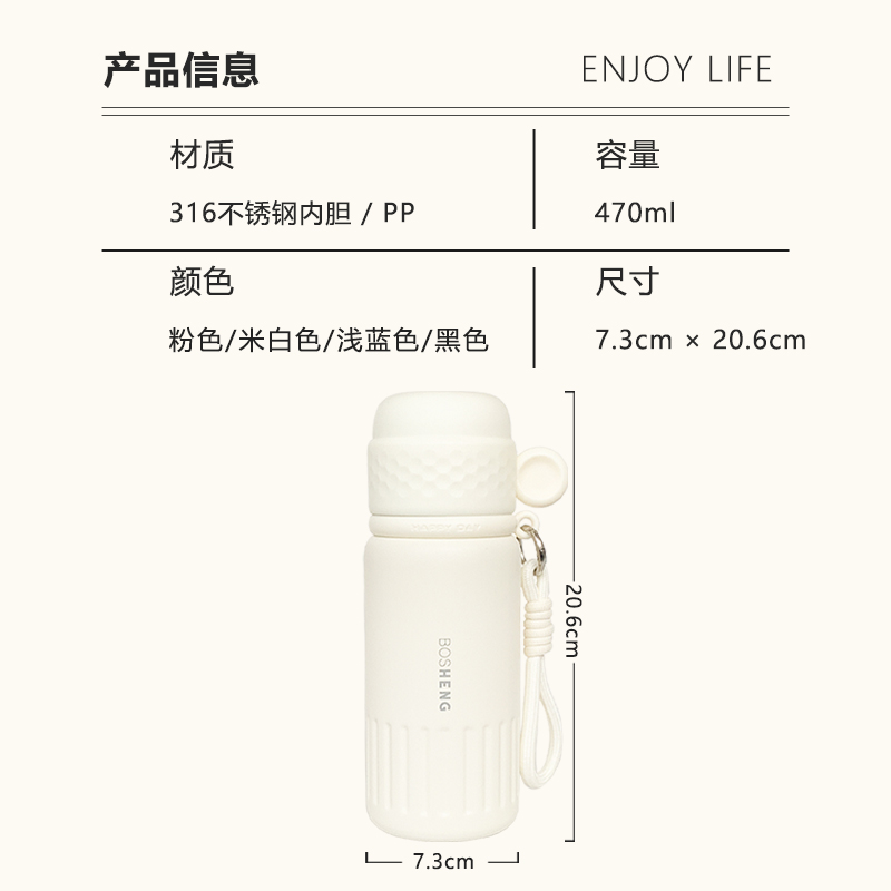 简约316保温杯女生2025新款高颜值便携带盖水杯女士吸管双饮杯子 - 安安cup