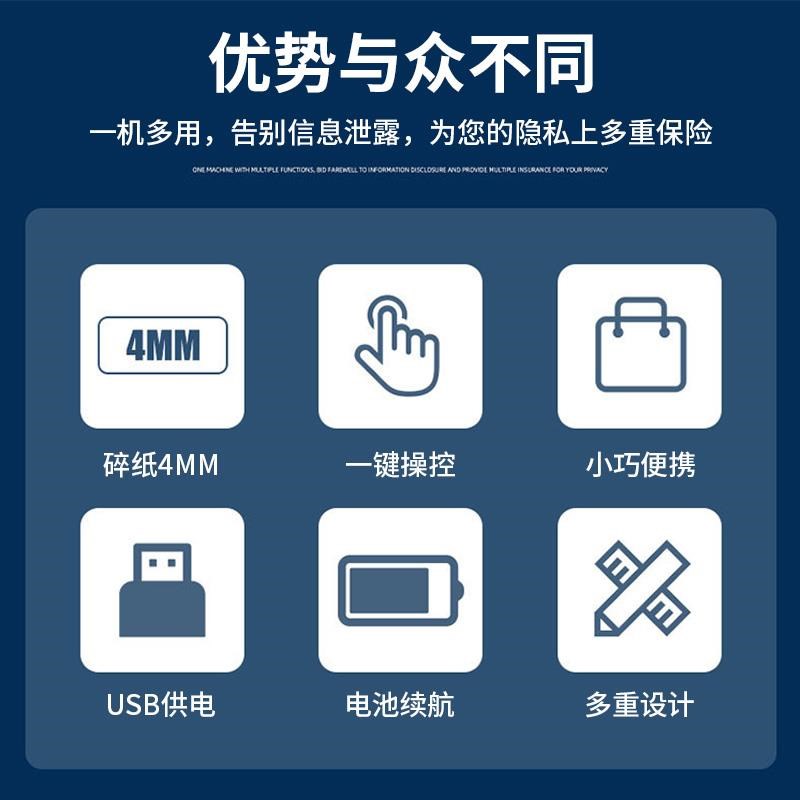 便携式碎纸机多功能迷你电动碎纸机办公家用小型A4A6纸文件粉碎 - 安隆铺商城