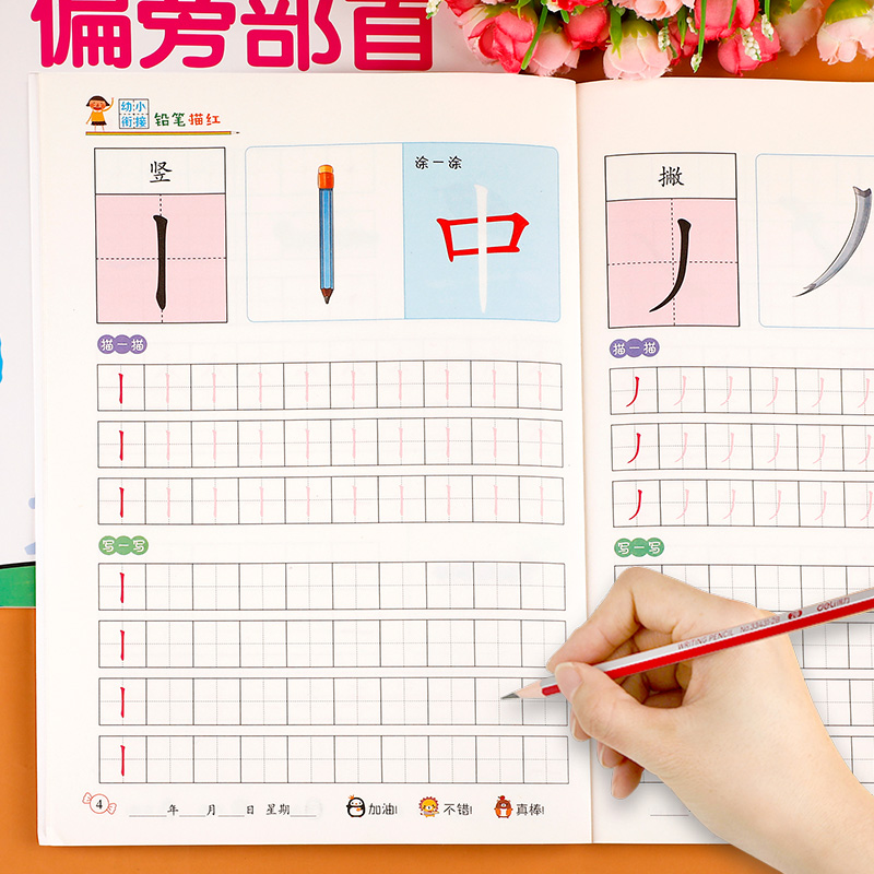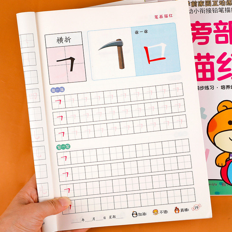 笔画笔顺练字帖儿童幼儿园偏旁部首练字帖汉字描红本幼小衔接每日一练教材全套学前班幼儿控笔训练早教启蒙写字本天天练专项训练 - 蓝鲸图书专营店