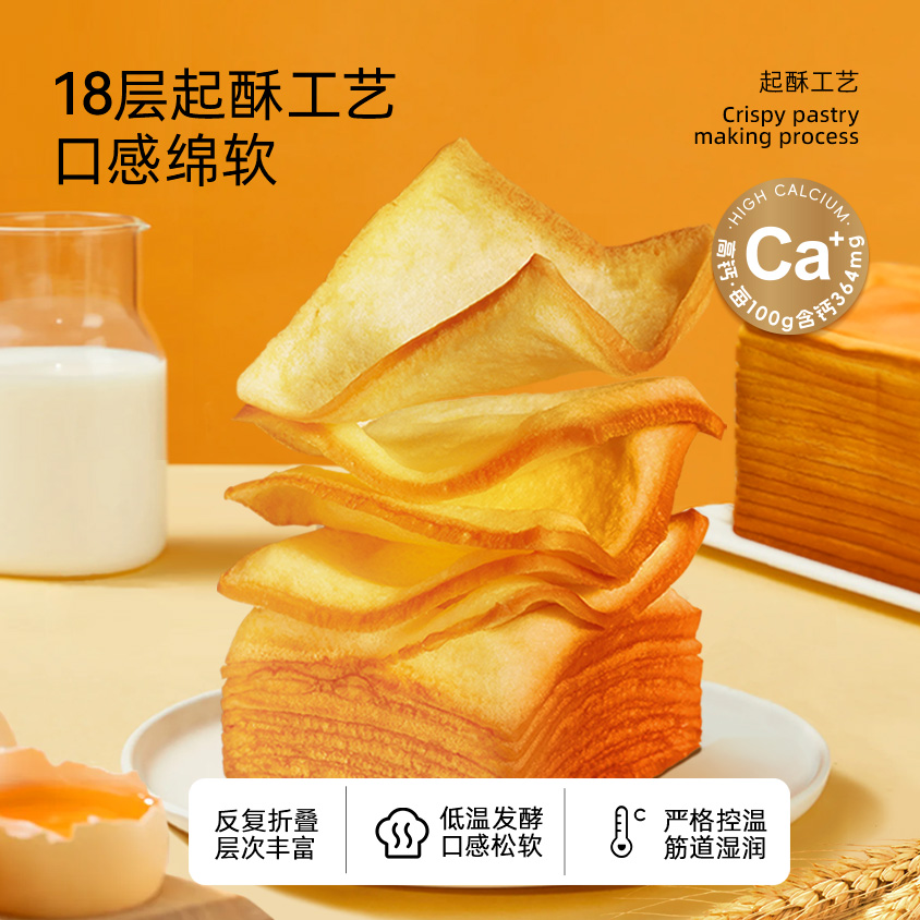 小饿小满足高钙牛乳千层吐司手撕面包糕点学生整箱营养早餐旗舰店