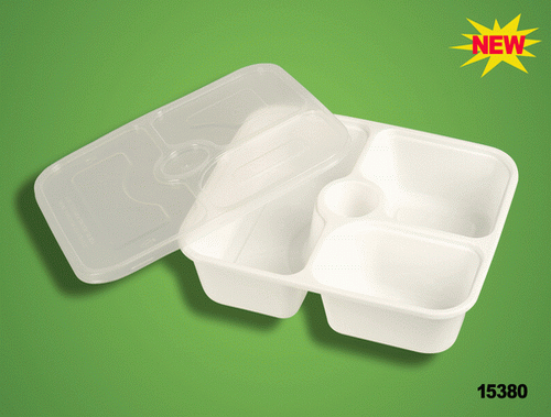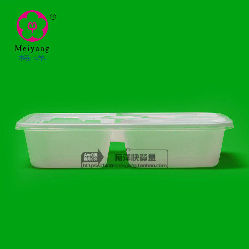 梅洋15380一次性餐盒三格注塑加厚白色保鲜盒外卖盒带酱料格120套 - 中国一次性用品商城淘宝店